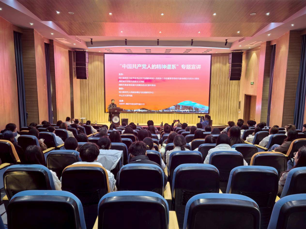 此次活动是绵阳城市学院深入贯彻落实“立报国强国大志向,做挺膺担当奋斗者”主题宣传教育的重要一环,旨在引导广大师生从中国共产党人的精神谱系中汲取磅礴伟力,坚定走好中国式现代化道路的信心与决心。宣讲会的成功举办,有效提升了师生对党的这一宝贵精神财富的系统性认知,强化了传承红色基因、担当时代使命的思想自觉与行动自觉,是学校以实际行动学习贯彻党的二十届四中全会精神、落实立德树人根本任务、培养担当民族复兴大任的时代新人的生动实践,为新征程凝聚了强大的精神动力,也为持续深入贯彻落实党的二十届四中全会精神注入了坚实的思想动能。
