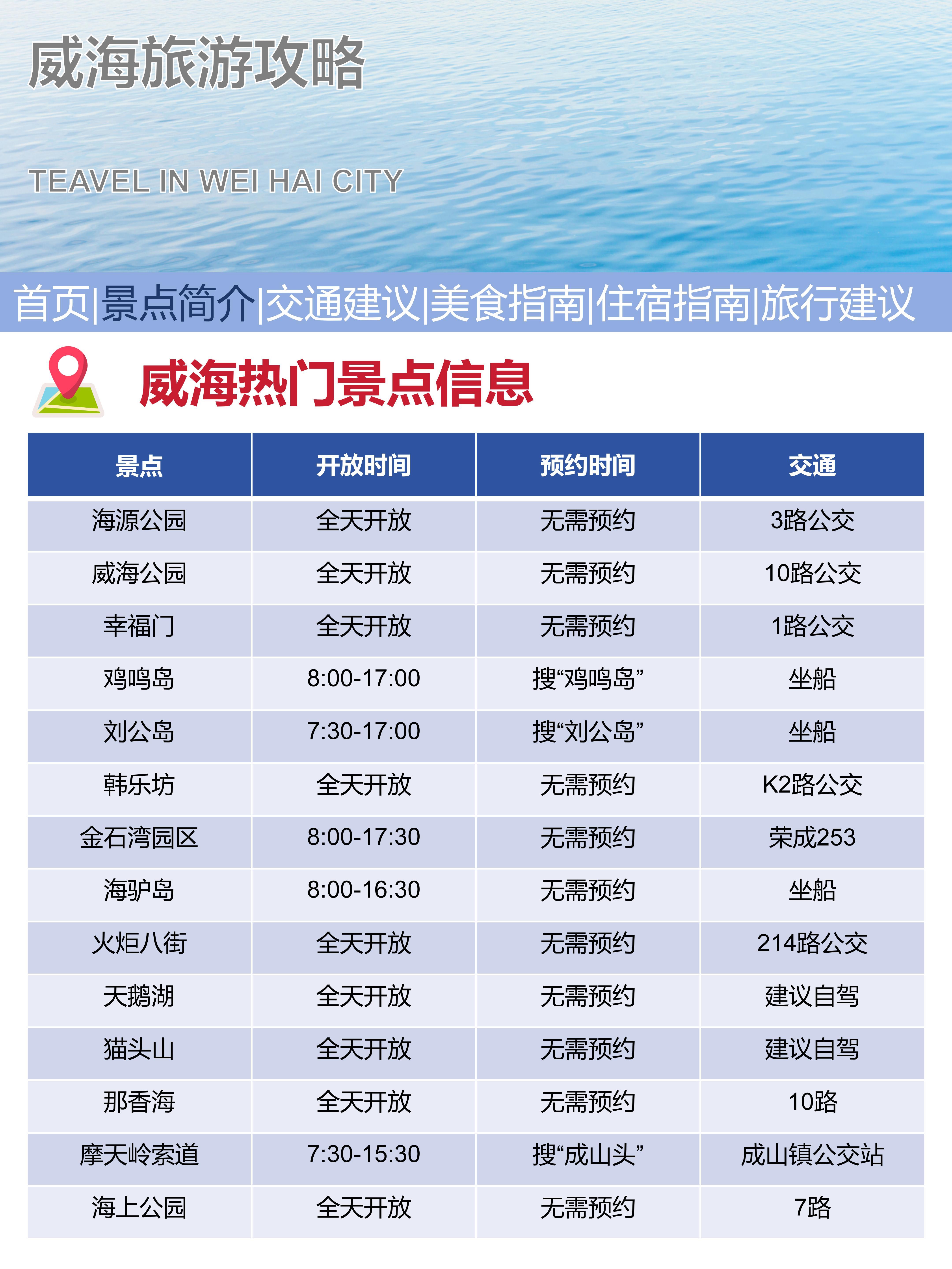 刚发布的威海旅游通知!幸好出发前看到9-10月打算来威海旅游的家人们快来看~刚好可以派上用场啦,一定要认真读完啊,不然真的很容易踩坑,包含了热门景点、旅游建议、交通、住宿、美食等