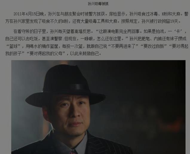 他个人在表演上也是有天赋有实力的,因此后来在内陆发展也还算顺风顺水,整体发展情况都很不错,一直到2011年4月份,孙兴因为涉嫌吸毒和藏毒被公安机关直接逮捕。