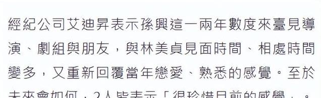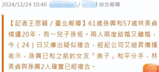 但最近这两年,孙兴可能是年纪大了,总是怀念往昔。所以也经常飞到台湾和朋友聚会,在这期间和林美贞再度相逢,两个人干柴烈火,又走到了一起。