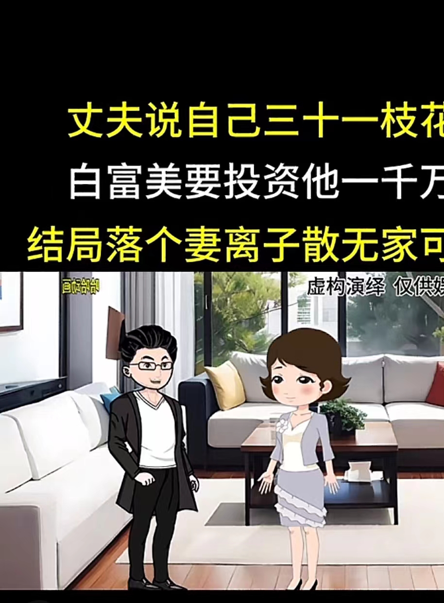 话说这丈夫刘晓俊有一天突然跟妻子刘小丽说:“亲爱的,我跟你讲,我可是三十一枝花,魅力无限大!现在有个白富美,要投资我一千万开公司呢!”妻子一听,心里“咯噔”一下,觉得这事儿太不靠谱了。