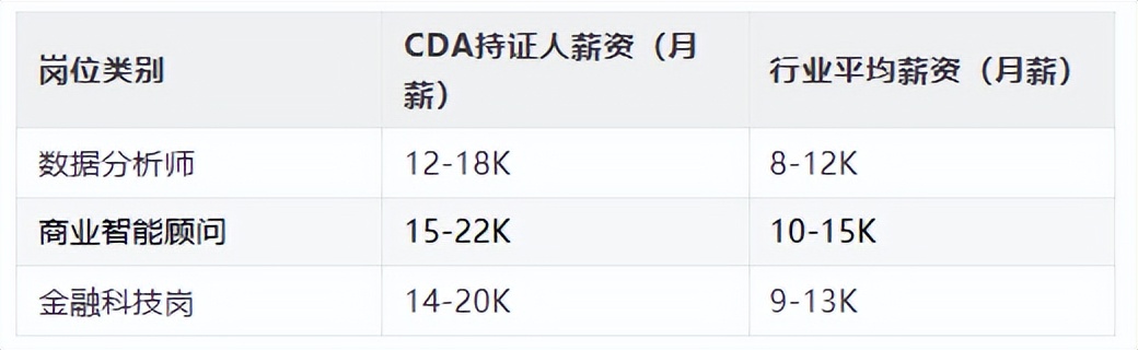 根据2025年《数据人才市场研究报告》,CDA持证人在一线城市平均起薪达12-15K,比无证求职者高30%以上(详见表1)。