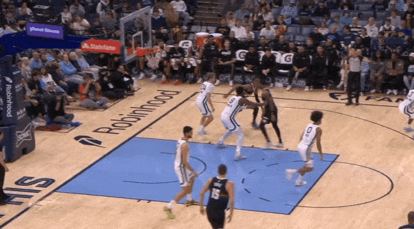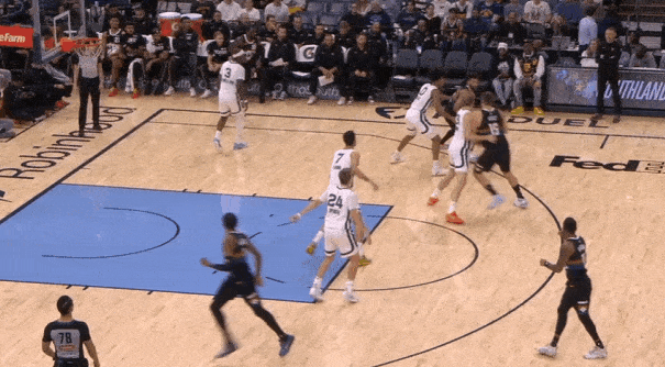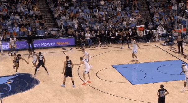 约基奇面框突破灰熊给延迟夹击,沃特森摆脱弱侧兼顾一防二的威尔斯后切入篮下,约基奇精妙绝伦的:转身的同时不看人背后传球找到空切沃特森,沃特森接球后上篮打进攻击灰熊禁区。
