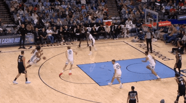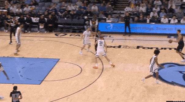 因为约基奇的存在其处在上线、高位能够天然将对方协防核心调离禁区,这也是掘金的”流氓逻辑“。这个回合中约基奇持球推过半场后佯装和布朗在上线开展“反向挡拆”配合,吸引阿尔达马的防守注意力,而沃特森早已在其身后溜底线执行“Back Cut”,约基奇人到球到。