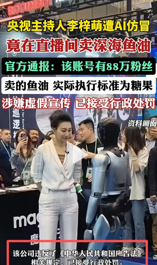 今年2月,北京市海淀区市场监管局查处了首例利用AI技术进行虚假广告宣传的案件,那款所谓能治病的鱼油实际上只是普通食品,执行标准为糖果,而李梓萌的形象,完全是利用AI技术伪造生成的。