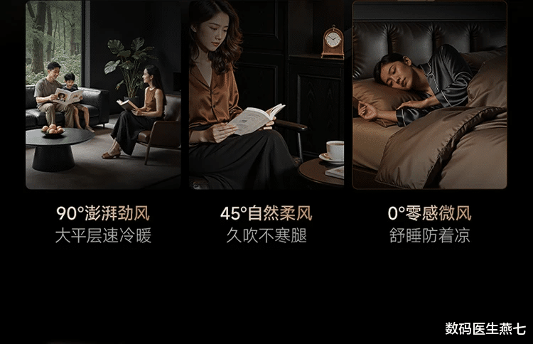 举个例子,以前老公想刷手机要强劲冷风,媳妇在另一边沙发追剧怕冷只能加个毯子。但现在一屋两风,一边设置90°澎湃劲风一边设置45°自然柔风或0°零感微风,每个人都有自己专属的个性化定制的舒适区,谁也不用迁就谁,避免不必要的家庭矛盾,也提升了幸福感。