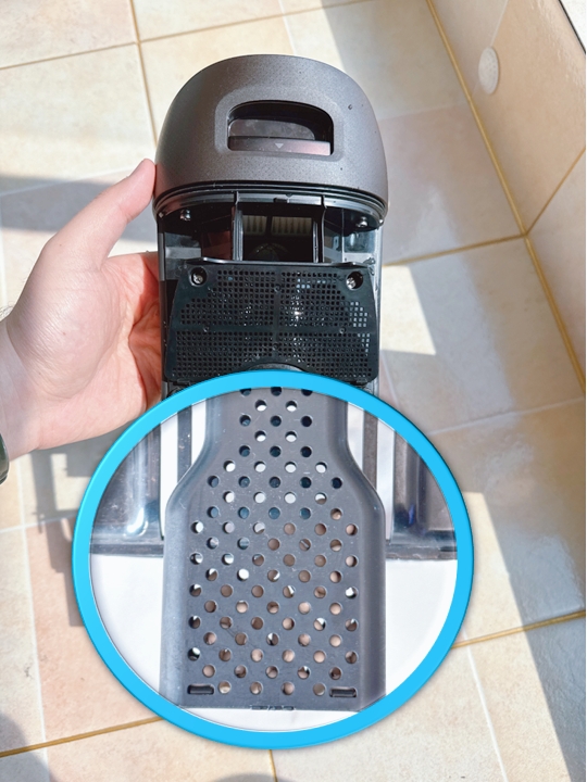 5分钟极速烘干模式,仅做杯拿铁咖啡的功夫,机器就已完成自清洁。卸下盖板和滚刷仔细查看,不单是滚刷刷毛干燥蓬松,连同底座、风道、盖板在内都很干净。