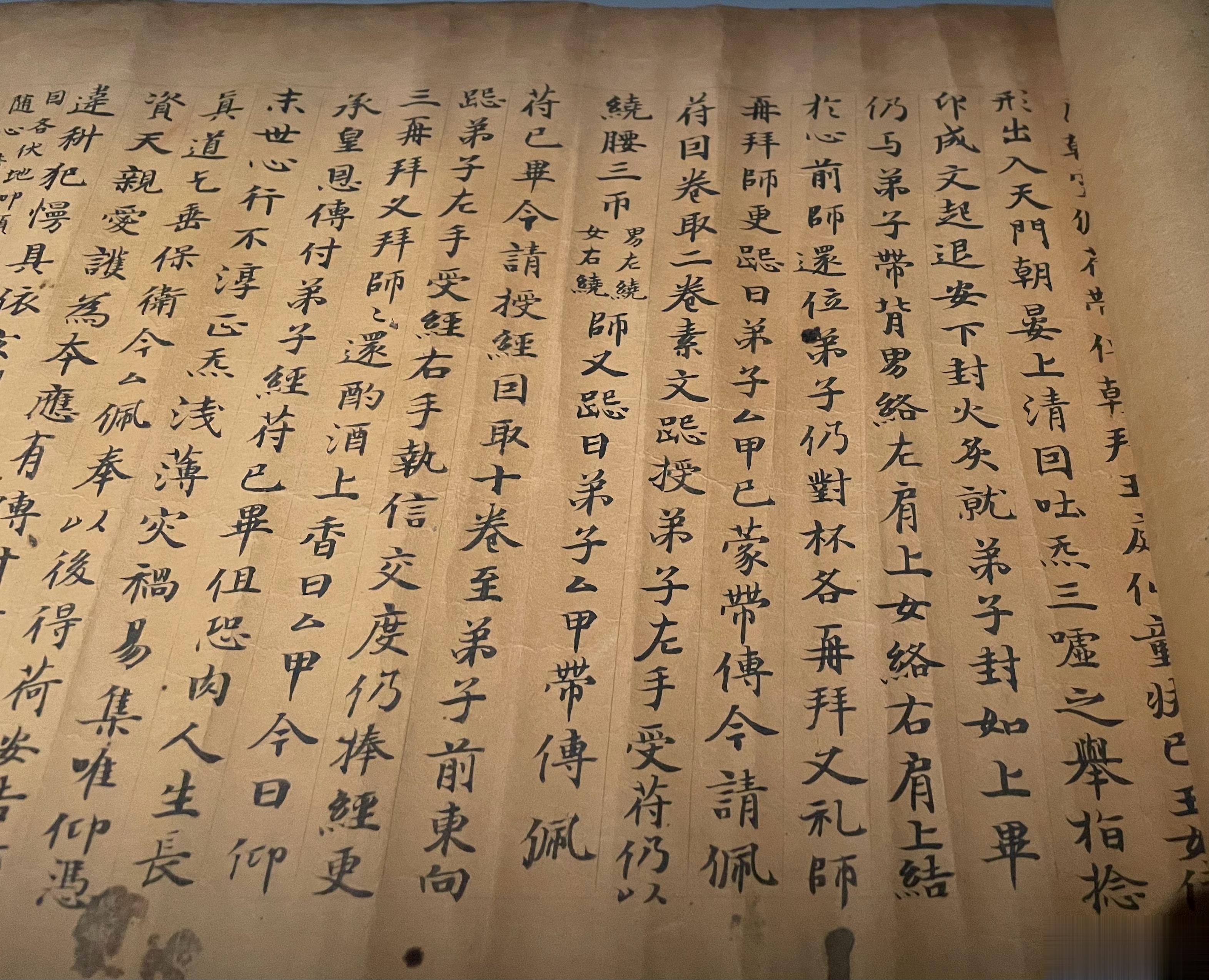 昨天惊喜地在吉美博物馆的亚洲传统医药展上见到了敦煌所出《陶公传授仪》(P2559)残卷,这件八世纪写经对道教研究有着重要意义。据日本学者大渊忍尔研究,法国国家图书馆所藏的P2559与英藏残卷应出自同一抄本,并按残存文本推测该卷与陶弘景五法传授仪相关。南朝学者陶弘景对道教有着深入研究。他所整理编纂的道书多有存世,但其编制的五法传授仪具体内容却已失传,仅可从唐代张万福的记载中瞥见一二。敦煌残卷的现世为其复原提供了依据。大渊忍尔推测完整内容应有《授受六甲符法》、《授受西岳禁山符法》、《授受五岳真形图法》、《授受三皇文法》和《授受灵宝五符法》五部分,法藏残卷应为第三和第四部分。我国学者王卡后又于中国国家图书馆藏品中发现一残片,并与法藏和英藏部分进行连缀校录,得出了更为全面的解读。从《陶公传授仪》的复原过程也可以看出伯希和和斯坦因对藏经洞文书的劫掠致使珍宝四散各国,对进一步研究造成了困难。