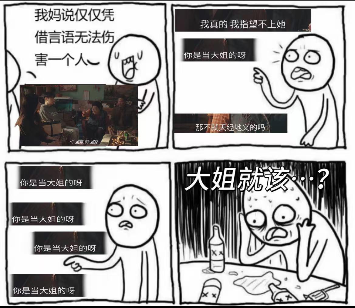 “你是当大姐的”——这句在《四喜》中反复出现的话,像一道无形的枷锁,将许知夏牢牢困在“长女”的角色里。她是弟妹眼中无所不