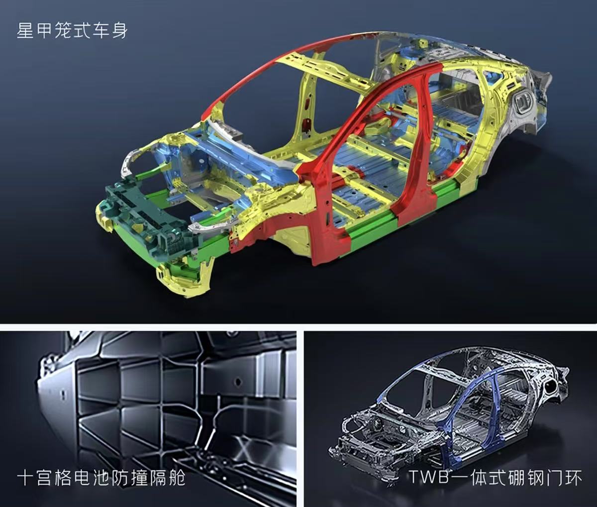 硬核安全防护为出行保驾护航,星甲笼式车身搭配TWB一体式硼钢门环与7系铝合金前防撞梁,关键部位强度高达1500MPa,如同为车辆穿上“钢筋铁骨”。神盾电池系统经过针刺、挤压等严苛测试,凭借实时监控、多层隔热与主动冷却三重防护,确保极端情况下不起火、不爆炸。再加上6安全气囊+贯穿式侧气帘的全方位保护,让每一次出行都安全感拉满。