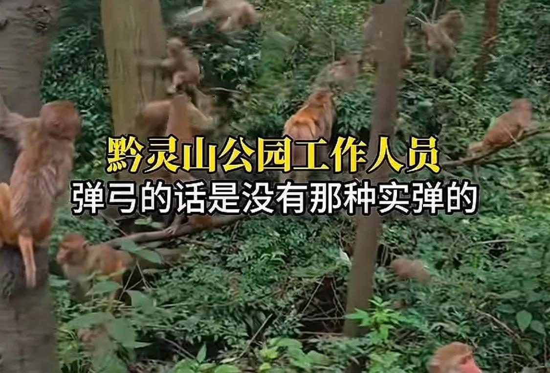 “应该是他觉得自己这么远过来,没看到猴子,不理解工作人员用弹弓把猴子驱赶的行为,其实他留意一下就会发现周围都有安全提示,就是要离猕猴3米距离进行观赏。”