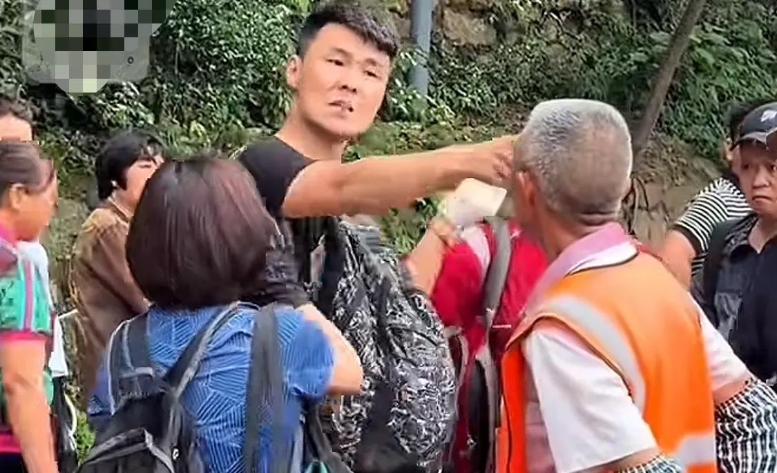 当时在景区的道路上,该游客不顾众人的阻拦,指着一身着橙色背心的工作人员质问,“我们1600公里过来看猴,你打它?二级保护动物你不知道吗?”