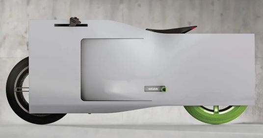 这款摩托车要是从侧面位置上看的话简直可以一个手电筒一样,当然,这只是它未启动时的样子,而在将其启动之后,nUCLEUSO的车身就会慢慢升起,并露出隐藏在底下的轮子。与此同时,车内的踏板和座椅也会相应地弹射出来,这样看来倒是有了点我们印象中摩托车的样子了。