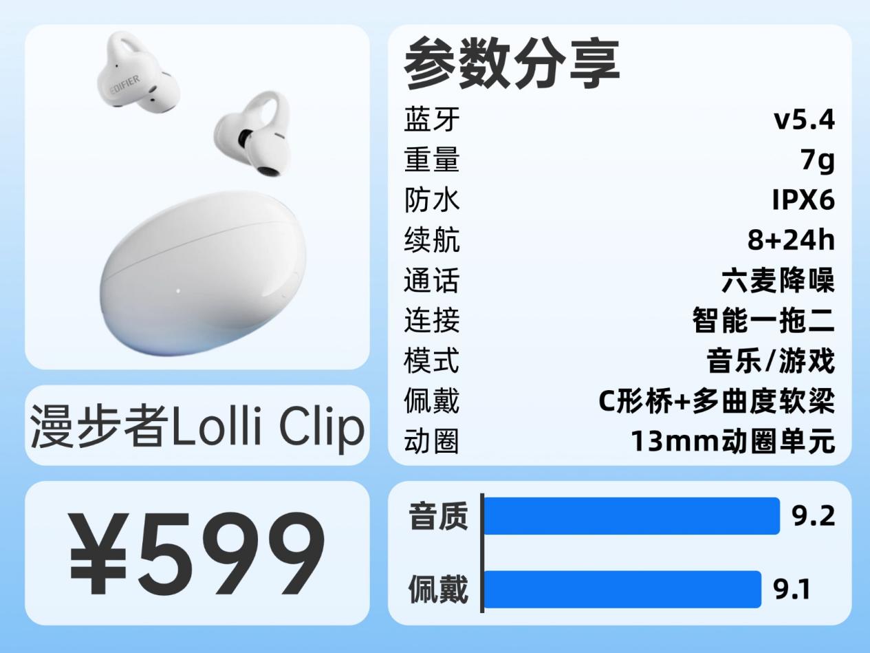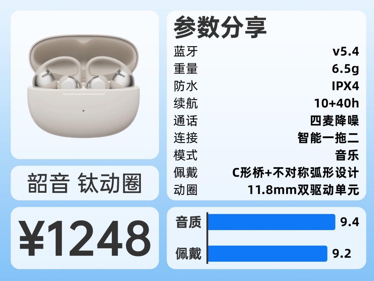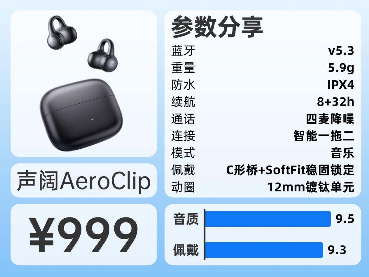 推荐理由:百元价位全能型耳夹式耳机,佩戴。音质、性能都没有明显短板!