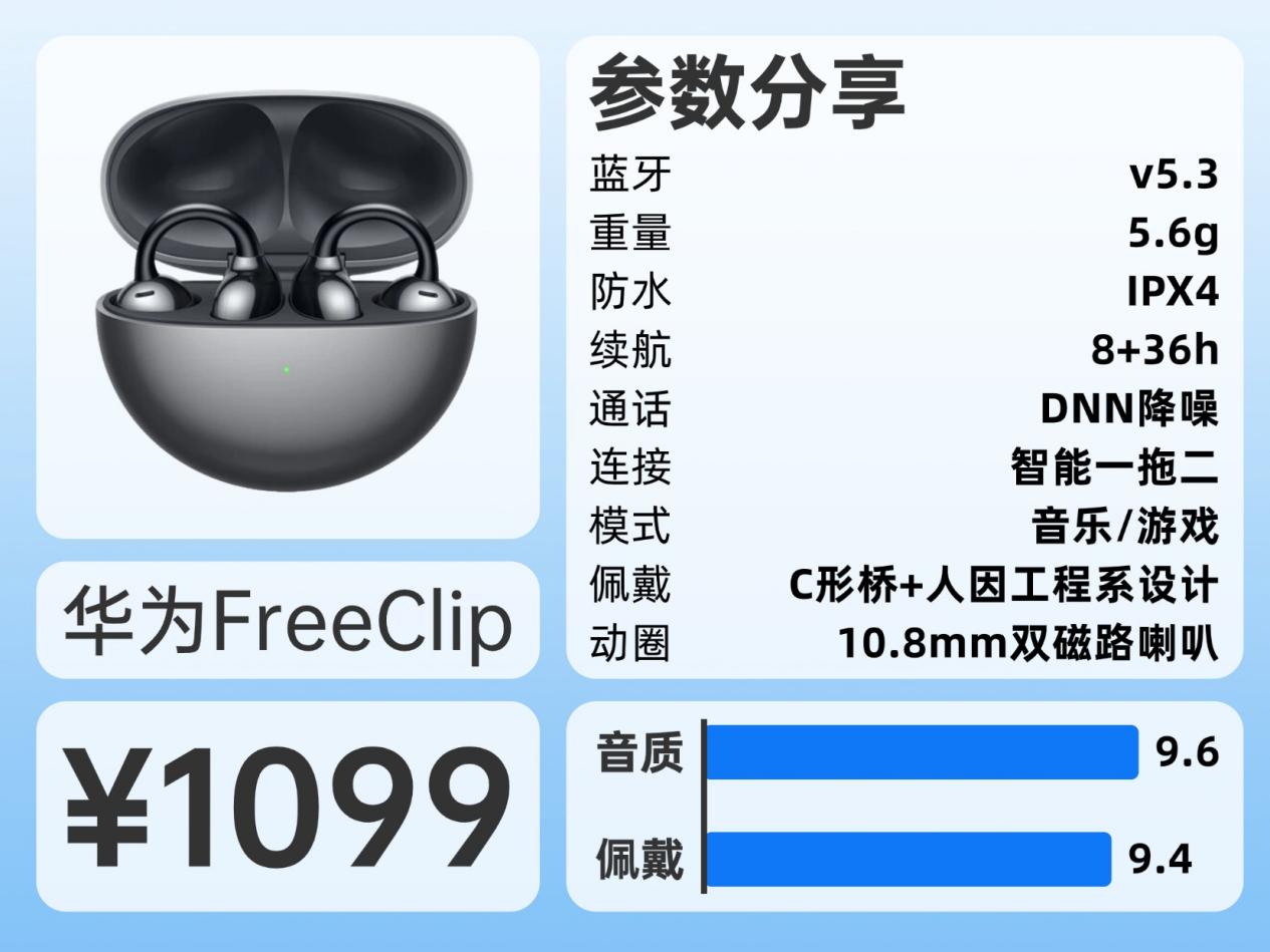 推荐理由:耳夹式耳机公认天花板,适合同生态用户。
