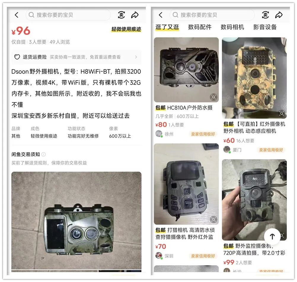 虽然不知道这类产品的原价卖多少,但同类二手野外摄像机都不贵,均价几十元居多,很少有超过100元的。并且这玩意有720P、1080P和4K等不同像素版本,但价格并不是等比上涨的,比如有一款720P开价99元。