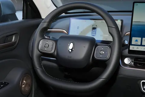 内饰方面,欧拉5的座舱布局运用了简约科技的风格,中控采用液晶仪表+悬浮式大屏的设计,下方为实体按键的空调控制区域。方向盘是D字造型,有一定的运动感。方向盘右侧是怀挡式的换挡杆。扶手箱前侧配备单手机无线快充面板。15.6英寸大尺寸中控屏,采用Coffee OS 3系统,通过AI赋能重新定义智能座舱,让座舱功能可学习、可成长、可变化,全面满足了当代都市生活家的个性化需求。空调出风口下方保留部分物理拨杆,样式复古,镀铬材质看上去蛮有质感,扶手箱前侧配备单手机无线快充面板,为手机充电提供了方便。