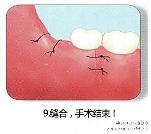 【智齿是怎么拔的?看完直冒冷汗】①智齿躺着埋伏在牙床里;②用手术刀切开牙床;③露出额骨;④削掉一小块颚骨,以便拔除智齿;⑤分割切碎智齿,取出;⑥拔出齿根;⑦清理牙洞中残留的碎齿;⑧清洗牙洞;⑨缝合,手术结束!想想都好疼!好疼!