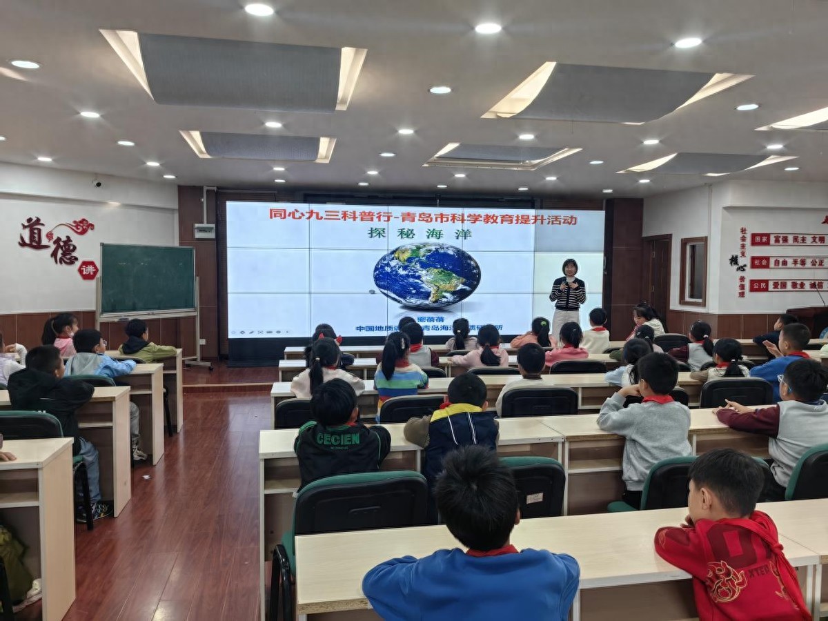 10月23日下午,九三学社青岛市市南区委员会走进青岛八大峡小学,开展“同心九三科普行——青岛市科学教育提升活动”。本次活动以“认识海洋”为核心主题,特别邀请青岛海洋地质研究所正高级工程师密蓓蓓,为该校三年级、四年级200余名同学带来一场生动有趣的海洋科普盛宴。
