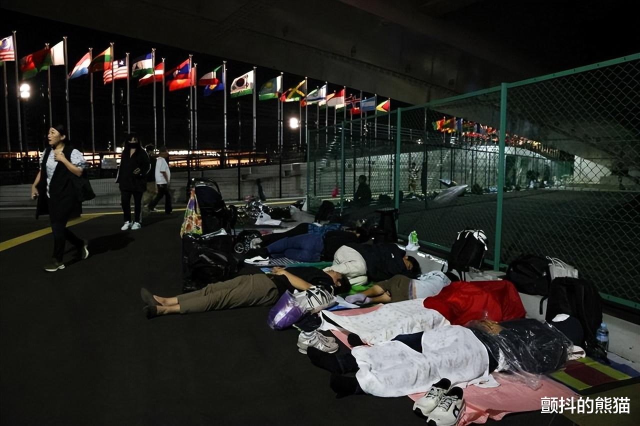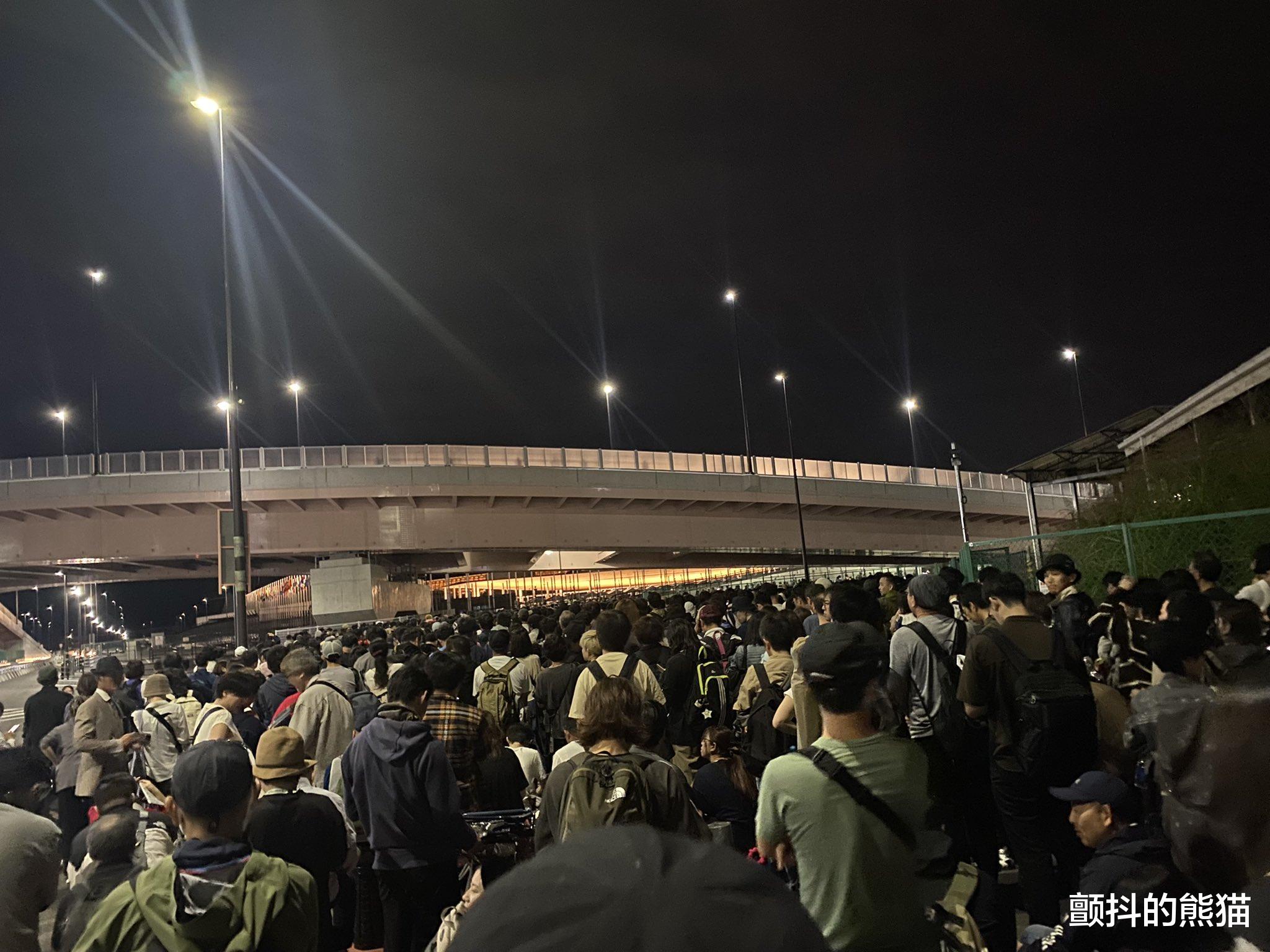 为在上午9点开园后第一时间入场,东门广场外道路出现绵延约900米直至梦舞大桥的彻夜排队队伍,人们铺设野餐垫、钻入睡袋通宵等待。据现场工作人员介绍,这支队伍是民众自发形成。众人或搭起帐篷,或蜷缩在睡袋中,静候黎明来临。