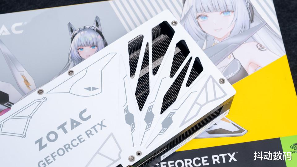这次50系的索泰天启下来显卡背板设计与之前有较大的变化,颜色方面采用了纯白设计。取消了之前显卡背后的两个辅助风扇的设计。采用高强度合金材质的纯白背板,右侧单翼式花纹与散热开孔巧妙融合,既增强质感又提升散热效率。