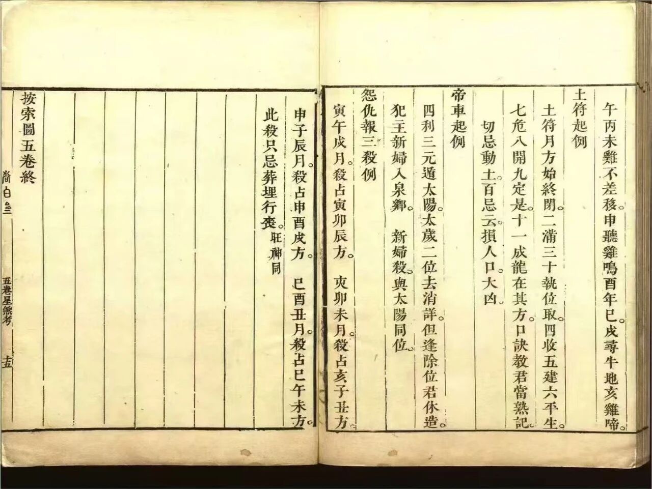 卷五 “按索图星煞考” 更显实战价值,将图中星煞与人事吉凶深度绑定。小至婚嫁、动土的吉日甄选,大至阴宅安葬的时空择定,均能通过图中红黑标注快速匹配 —— 如遇 “黄道天星” 红字所指之日,可避三煞、五黄等凶煞;见 “阴阳的煞” 黑字标注方位,则需调整行动时辰以趋吉避凶。这种 “看图择吉” 的便捷性,让复杂的干支神煞理论落地为可操作的日常指南。