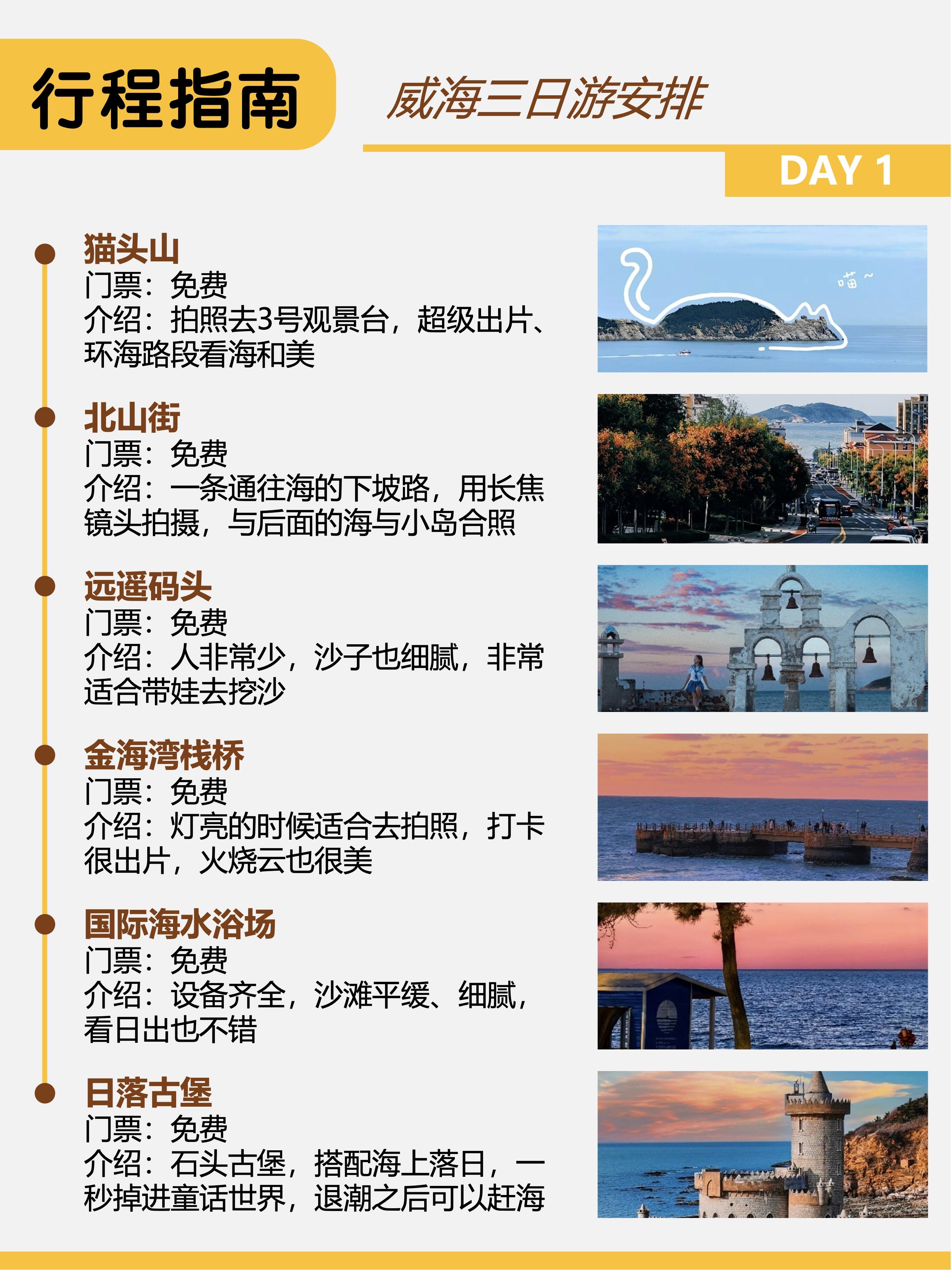 💥三天两晚行程推荐 👇👇Day1:猫头山→北山街→远遥码头→金海湾栈桥→国际海水浴场→日落古堡