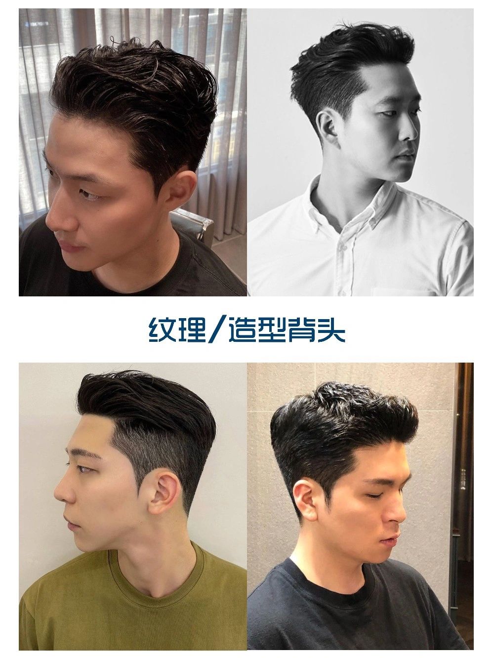 5纹理背头:和轻复古油头有异曲同工的意思。其实就是让头发看起来有层次、有纹理,也更有造型感。背头常给人有气势、气魄的印象,但有些古板。加以纹理的造型会更时尚。