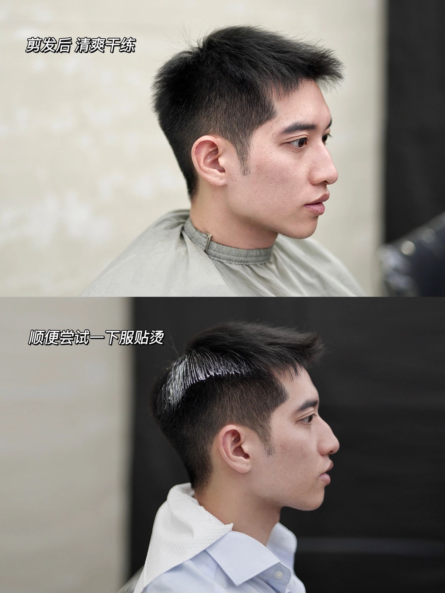 夏日新发型分享,告别太商务的发型尝试了一下韩式服贴烫,一整个很显头小 抓出了短碎发的感觉,代替了商务背头