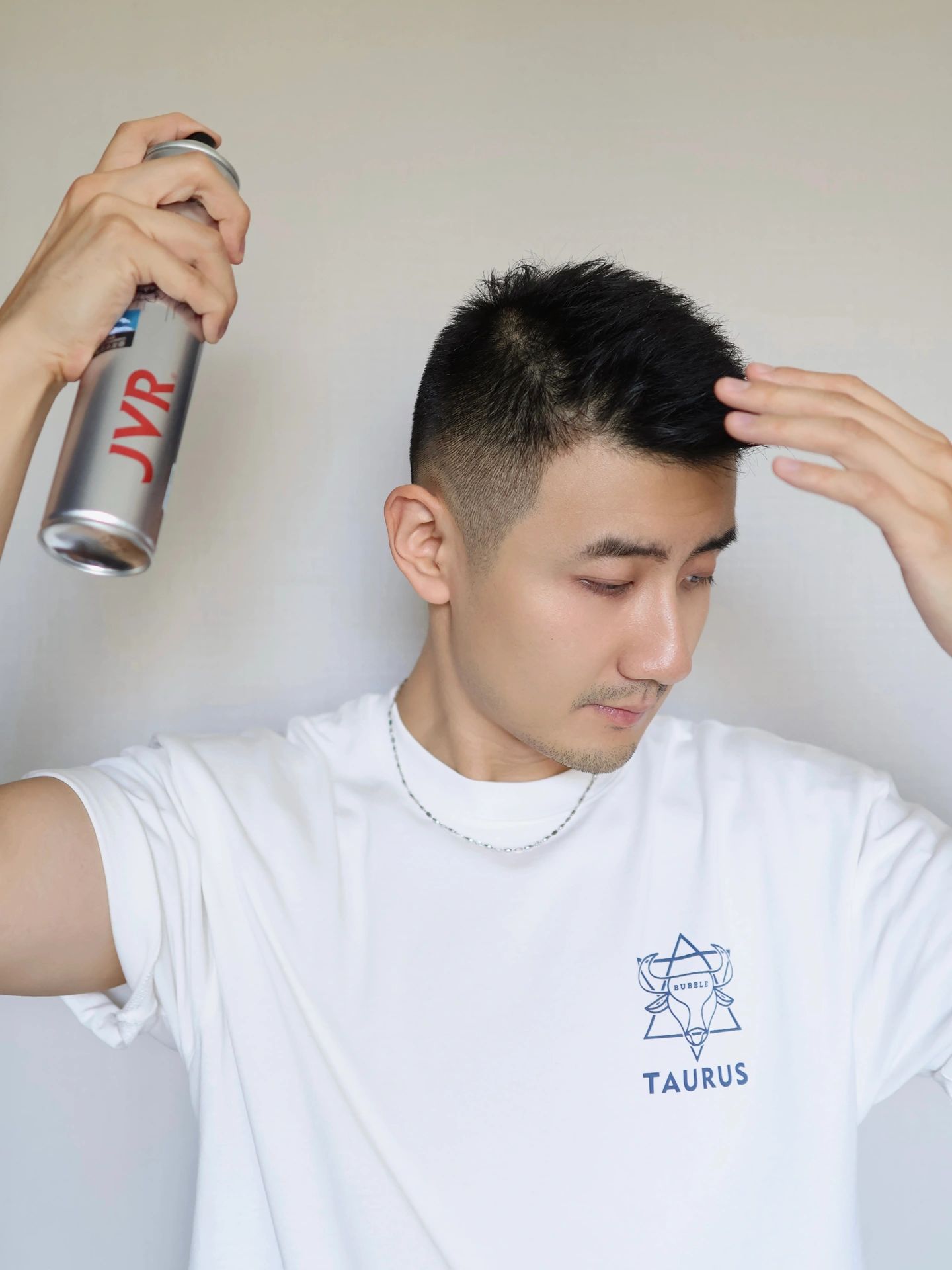 穿衬衫就是要配这样的绅士发型我几乎每天做了造型才会出门,不然会显得呆呆的今天答疑解惑,出一期自己日常头发造型教程 只需2步,快速搞定清爽又帅气的发型,真的很方便! ♂第1步:发泥造型日常我一般选择哑光发泥,比较适合日常使用。扣指肚大小,均匀搓在手指即可(这里和别人教程不一样,我不喜欢搓在手心,手心的发泥根本搓不到头发上)然后先随意把发泥搓到头发上,凌乱一些更显自然,然后顺着图片方向进行局部捋顺,用拇指和食指旋转拧成一些小绺,增加层次感。 Ps如果出席一些活动,可以借助梳子分开一条印,可以选择发蜡。 ♂第2步:发胶定型发胶摇晃几下,距离头发大概20厘米处均匀喷到头发上即可。一定要用定型效果强的发胶,不然头发很快就会扁塌了,我用的是杰威尔的,10年品质国货(我个人用了4年多),定型效果真的超持久!淡淡的海洋清香,没有刺鼻气味,并且你骑摩托车都不会吹散的(我不骑摩托,就是个比喻啦)还有一定防汗功能,我每天健完身头发也不会散。♂哦对了发泥我也是用的杰威尔的哑光发泥(哑光质感造型发泥)。家里还有一款带光泽的杰威尔发蜡(炫亮质感造型发蜡)