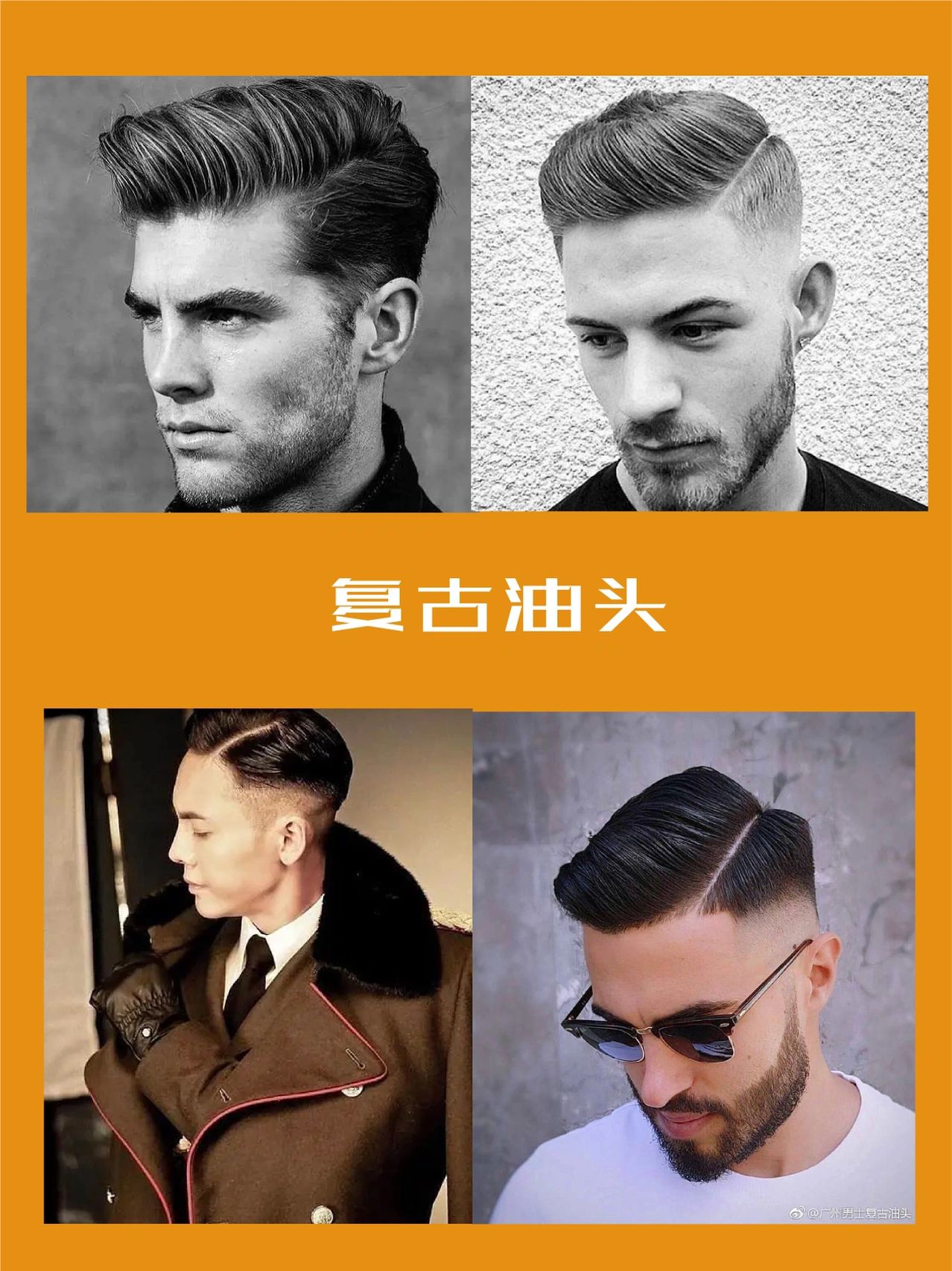 1、板寸头板寸头是一种常见的发型,也叫“板刷”。因为是一寸左右的头发,短的像板子而得名。板寸头特点头发的长度只有一寸,男士发型之一,适合头发较硬,具有硬汉风格的男士,头发短而整齐,上面是平的,上面与侧面棱角明显,近似方形,前边形似帽沿,总之,非常整齐,精神。 2、大背头大背头是发型的一种,指将额前的头发利用发油全部梳上去。这个发型很酷,比较时髦,自信、自然的话会讨女孩子喜欢,常见于欧美时尚秀以及商业人士。年纪小的人不适合大背头,风流只会给人反感,尤其是成年人的反感。不过如果够自信的话也是可以的,估计女生喜欢的还是多的。但千万要弄清楚自己是不是够自信,如果不自信披着这个发型出去女孩子也不会太感兴趣的,只会给人一个感觉,那就是这人太装了。当然如果不够自信或者说放不开但表面上还很自然也行,记住一定要自然,不然很让人反感一定要注意衣服的搭配,不然会闹笑话 3、复古油头无刘海,两髻逐渐向头顶收拢,有的甚至刮白,脑后略保留短发,耳后干净。整体给人以简约干练的清爽印象。 5、莫西干莫西干发型兴起于上世纪70年代,这种发型好似马鬃,后来慢慢演变成,以这种发型演变成各式的发型,但是他们都是在莫西干发型的基础上演变起来!来看看这里有你喜欢的发型嘛