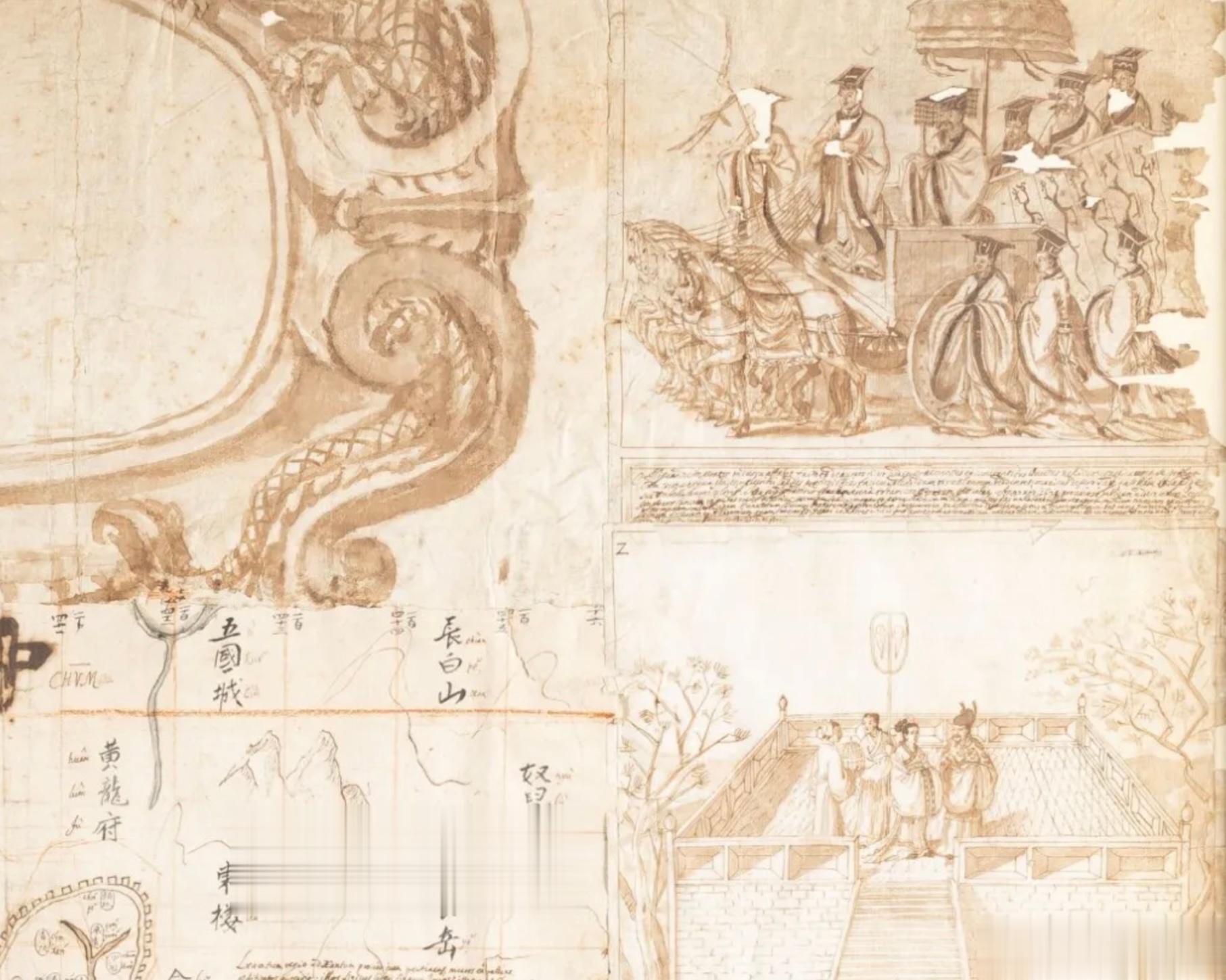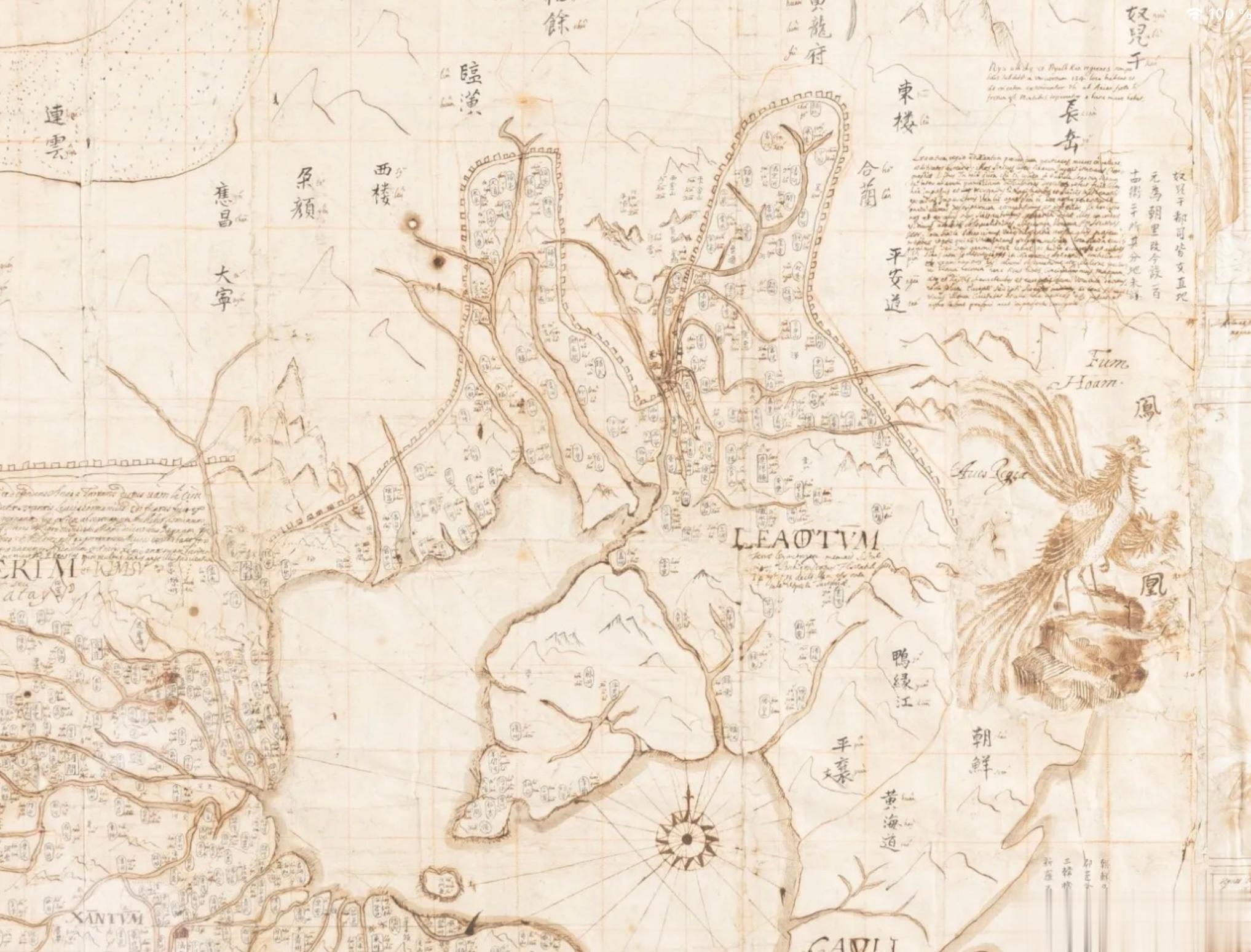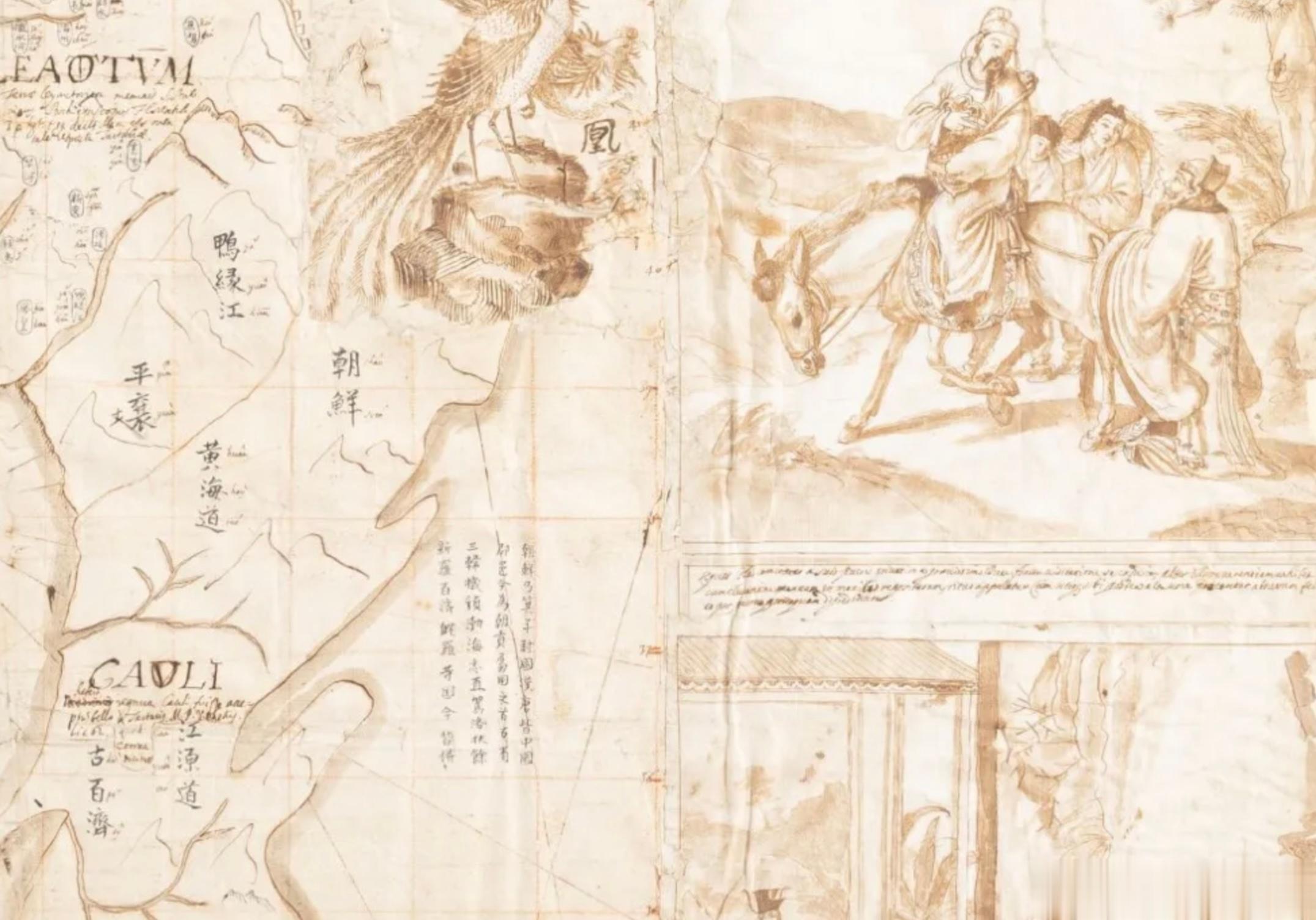 而令人惊讶的是在下个月法国的一场拍卖上有一份很可能是卜弥格绘制中国地图的残卷现世。残卷尺寸为78厘米x81厘米。有趣的是除了地图之外,残卷右侧有四幅人物图景。据拍卖行对拉丁语的解读,它们可能与崇祯生平有关。地图上的地名有中文和拉丁文转写标注,中文部分可能由他的助手完成。在得知消息后,我对比了一下残卷与梵蒂冈藏本的字迹,大致相同。虽然这幅残卷不是流失海外的中国文物,但同样对中国历史,尤其是科学史研究有着重要意义,如果可以进入国内机构公藏,并电子化使得更多学者可以研究的话就更好啦。