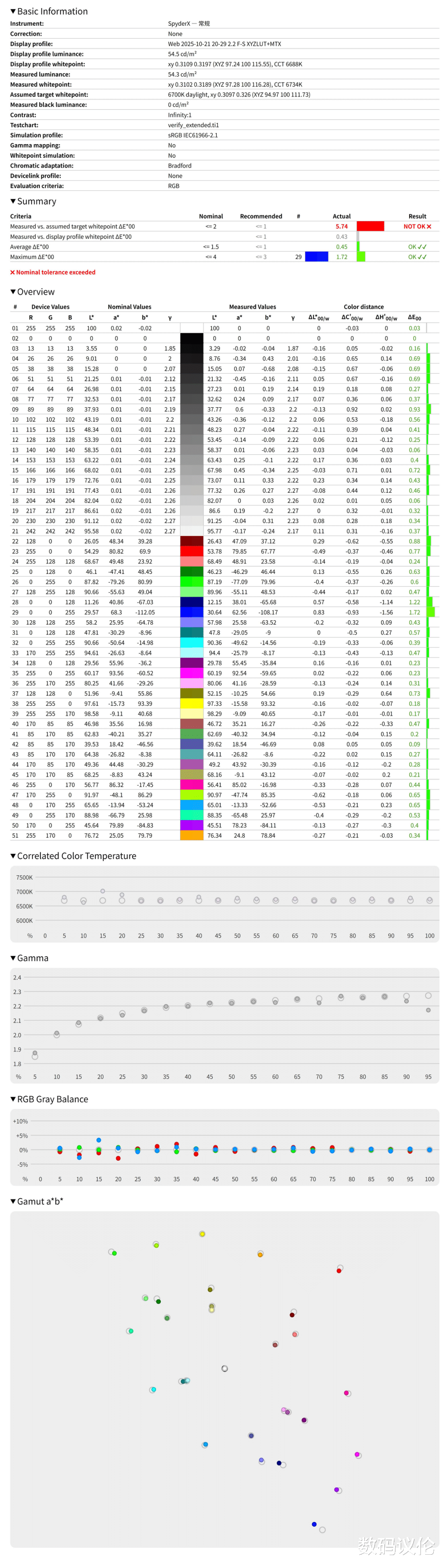专业原色模式下,平均ΔE色准达到了0.45的优秀水平。