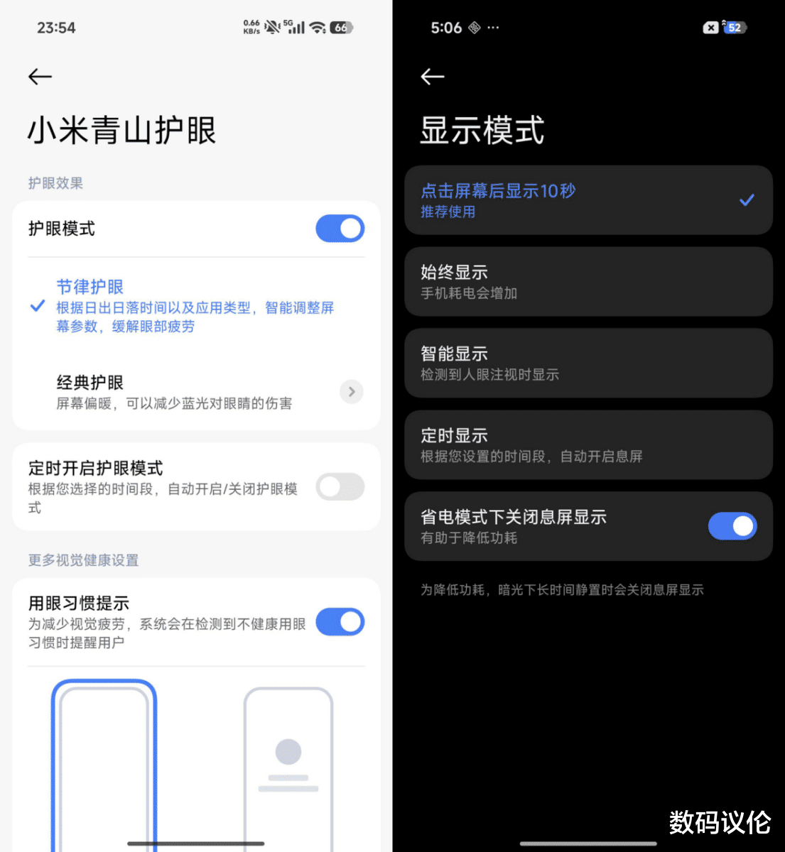 全链路的小米青山护眼3.0,支持节律护眼,支持用眼习惯提示。