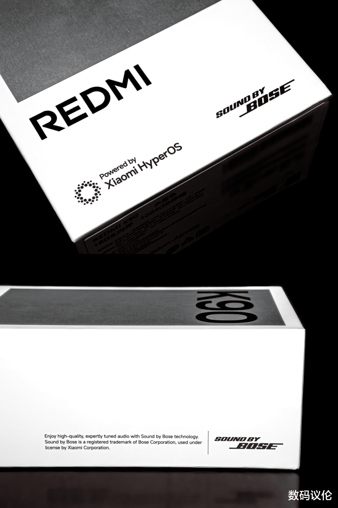 作为联名BOSE的系列,K90标准版在包装盒上就分别在正面和右侧面印上了Sound by BOSE的logo。