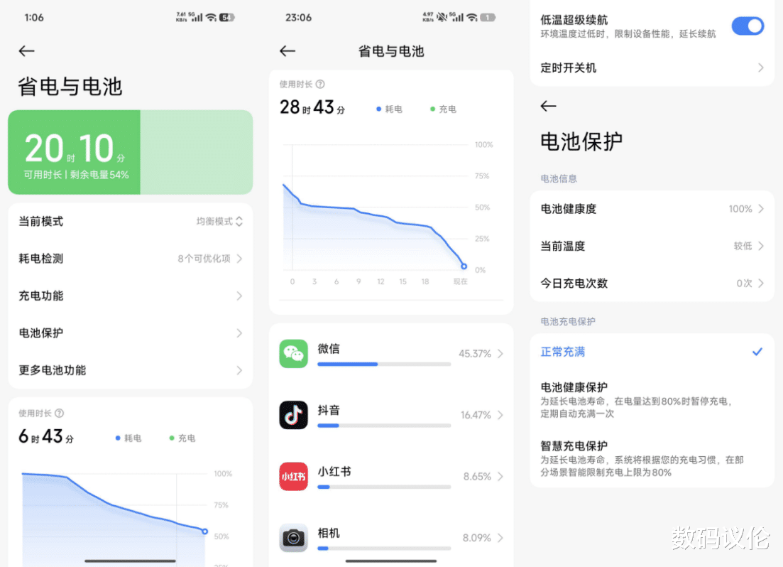 支持低温超级续航,支持电池健康保护和智慧充电保护,支持显示电池健康度,旁路充电似乎要等OTA?