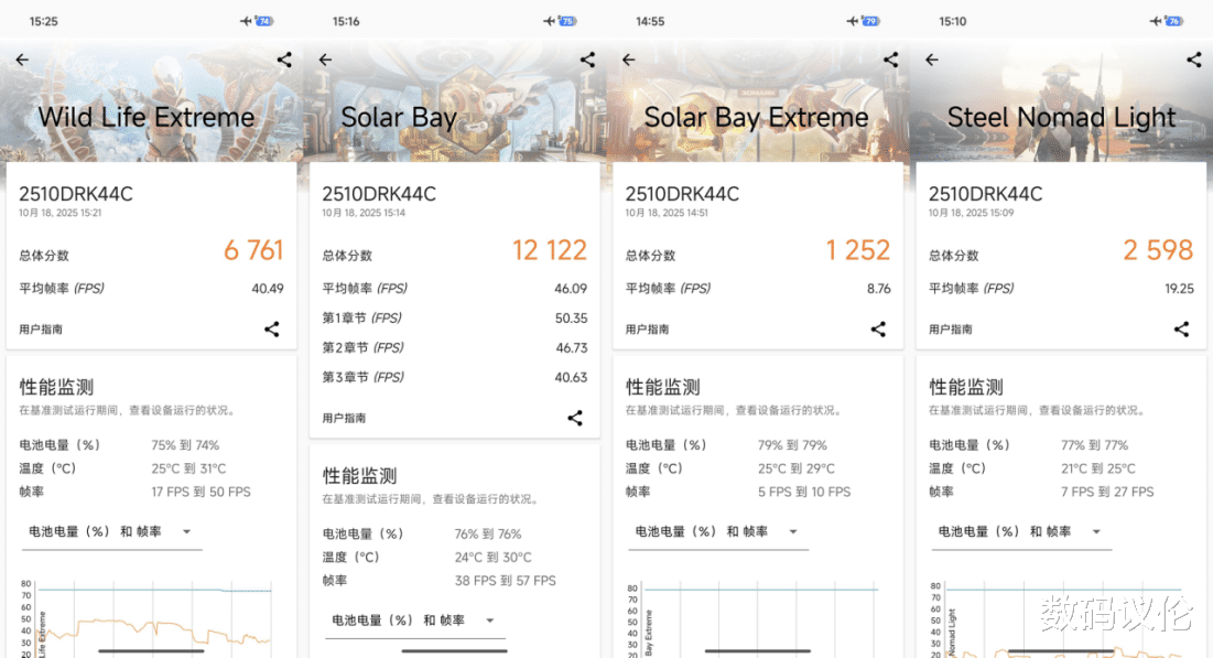 在3DMark中,Wild Life Extreme得分6761,Solar Bay得分12122,Solar Bay Extreme得分1252,Steel Nomad Light得分2598。