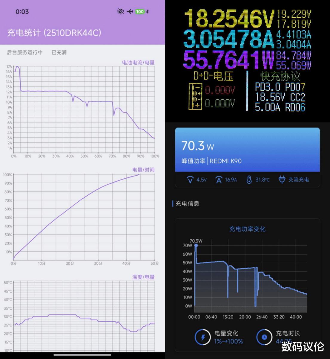 要知道,小米15的5600mAh也要45分钟左右。从曲线中可以看出,K90快充的高功率时长更持久了。