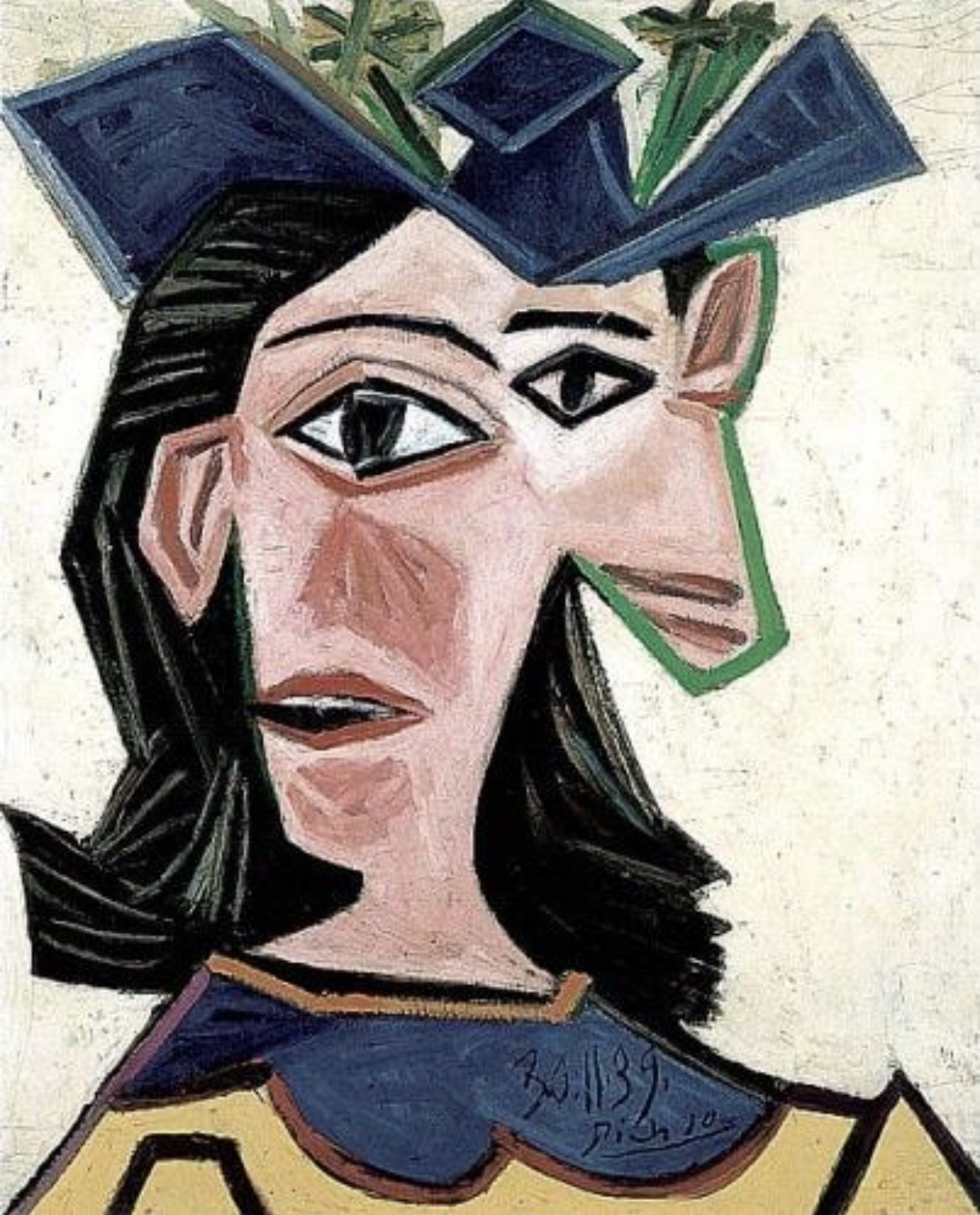 不久之后,毕加索创立了立体主义。这个时期的观点是:不要去描绘客观物体的外表形态,而是把客观物体引入绘画,从而将表现具象的物体本身和表现抽象的结构形态综合起来。按照传统的透视法,只有一个固定的感觉,多重透视的画法是不允许的。毕加索开创的这种立体主义的造型方法,就是要通过画面同时表现人(有脸有背)的所有部分,而不是像传统画法那样以一个固定视点去表现形象。