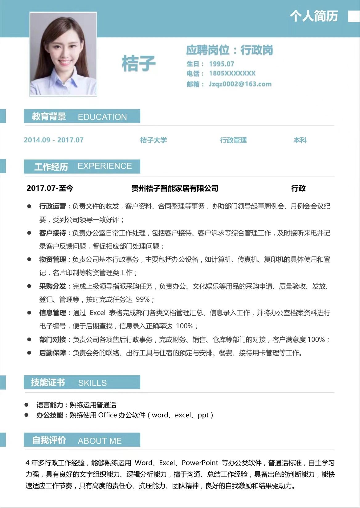 4、信息管理:通过 Excel 表格完成部门各类文档管理汇总、信息录入工作,并将办公室档案资料进行电子编号,便于后期查找,信息录入正确率达 100%;