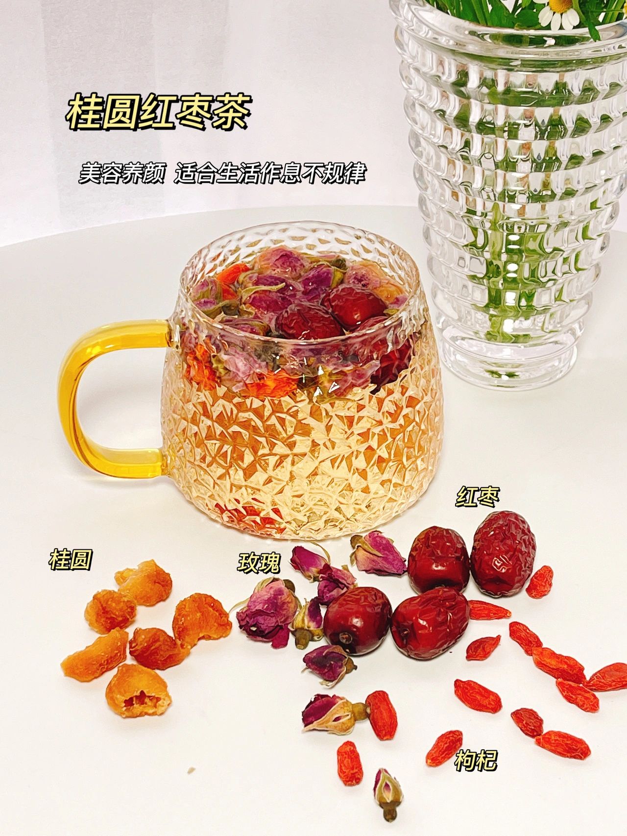 生活作息不规律,气血不足的姐妹,一定要试试这款花茶,这款桂圆红枣茶含有丰富的花青素,可以抗氧化嫩白肌肤。
