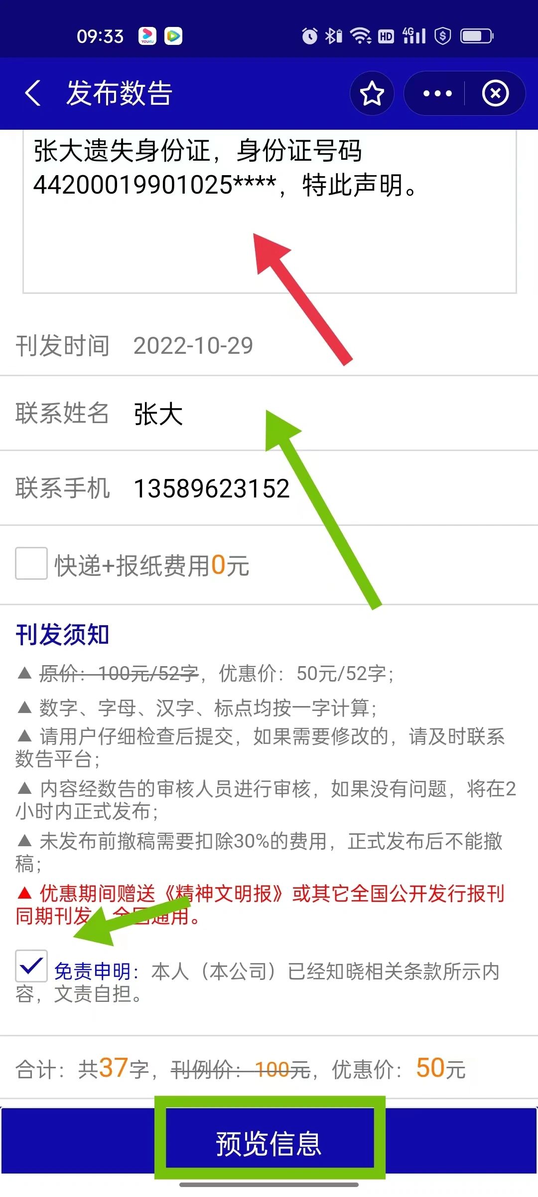 身份证挂失遗失声明,现在信息泄露严重,如果身份证被别人捡到,然后拿去登记或者做什么违法的事情,你也会有影响,那你在丢失的第一时间,发布遗失声明,避免后续不必要的损失!