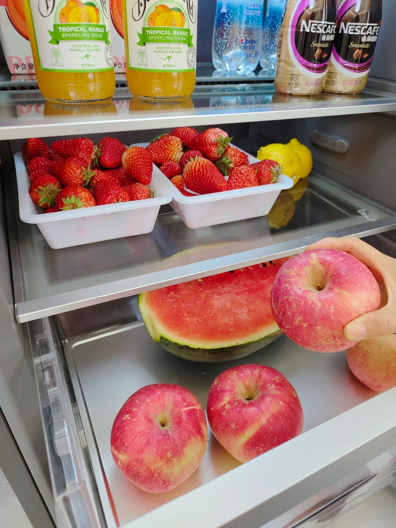 HCS核膜保湿也是一个亮点,能自动感应环境湿度,平衡果品盒内的水分,确保果蔬处于适宜的湿度环境,相当于延长水果的保鲜期5~7天。