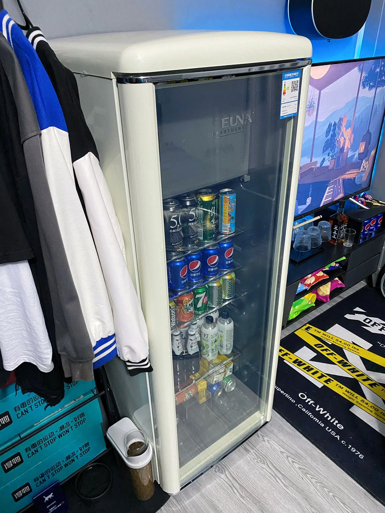 1颜值:复古的外形加上透明的玻璃,既复古又新潮,无论放在哪个角落都很好看,奶白色也非常百搭 2️功能:冰吧22L的冷冻的空间和223L的冷藏空间,冰淇淋饮料水果等放置都不成问题 3️细节:平时运作的时候没有什么声音,而且底下还有滚轮设计移动起来非常方便,整体的质感我是相当满意的