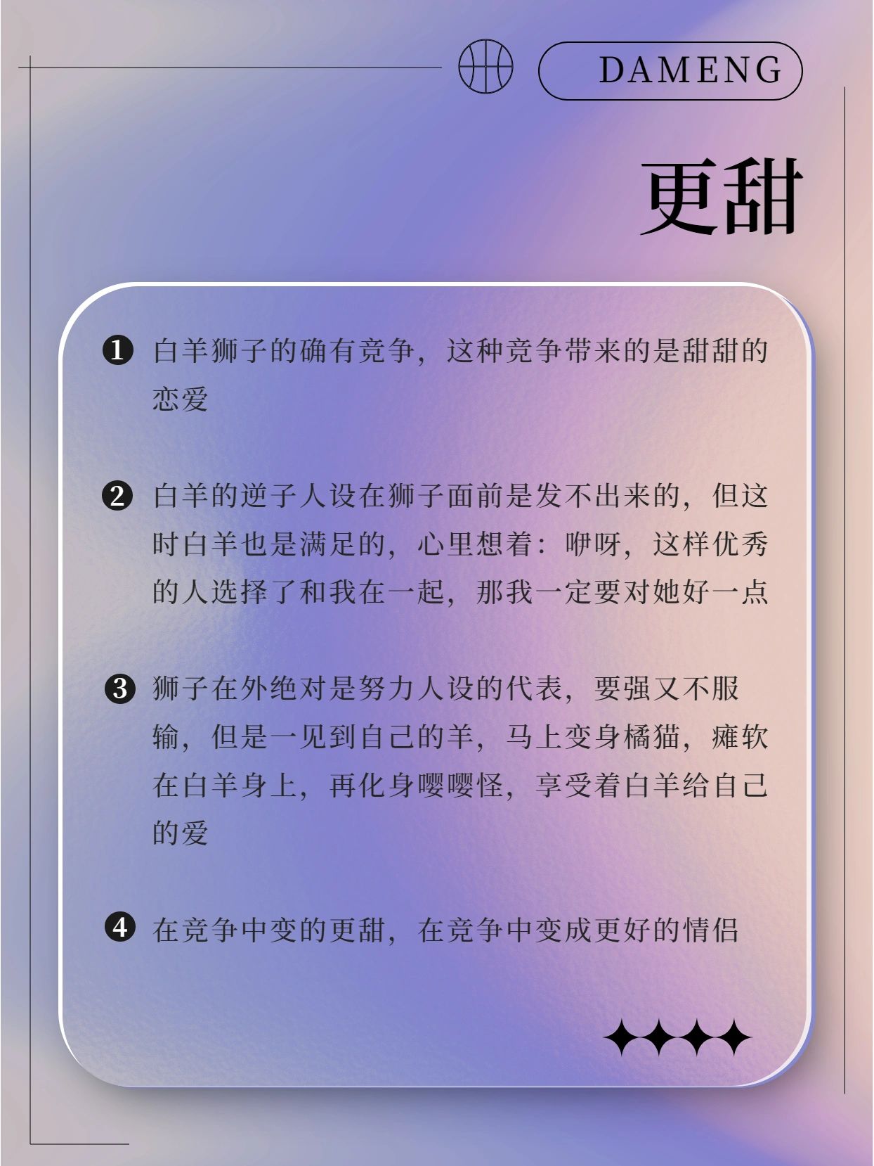 白羊狮子的确有竞争,这种竞争带来的是甜甜的恋爱