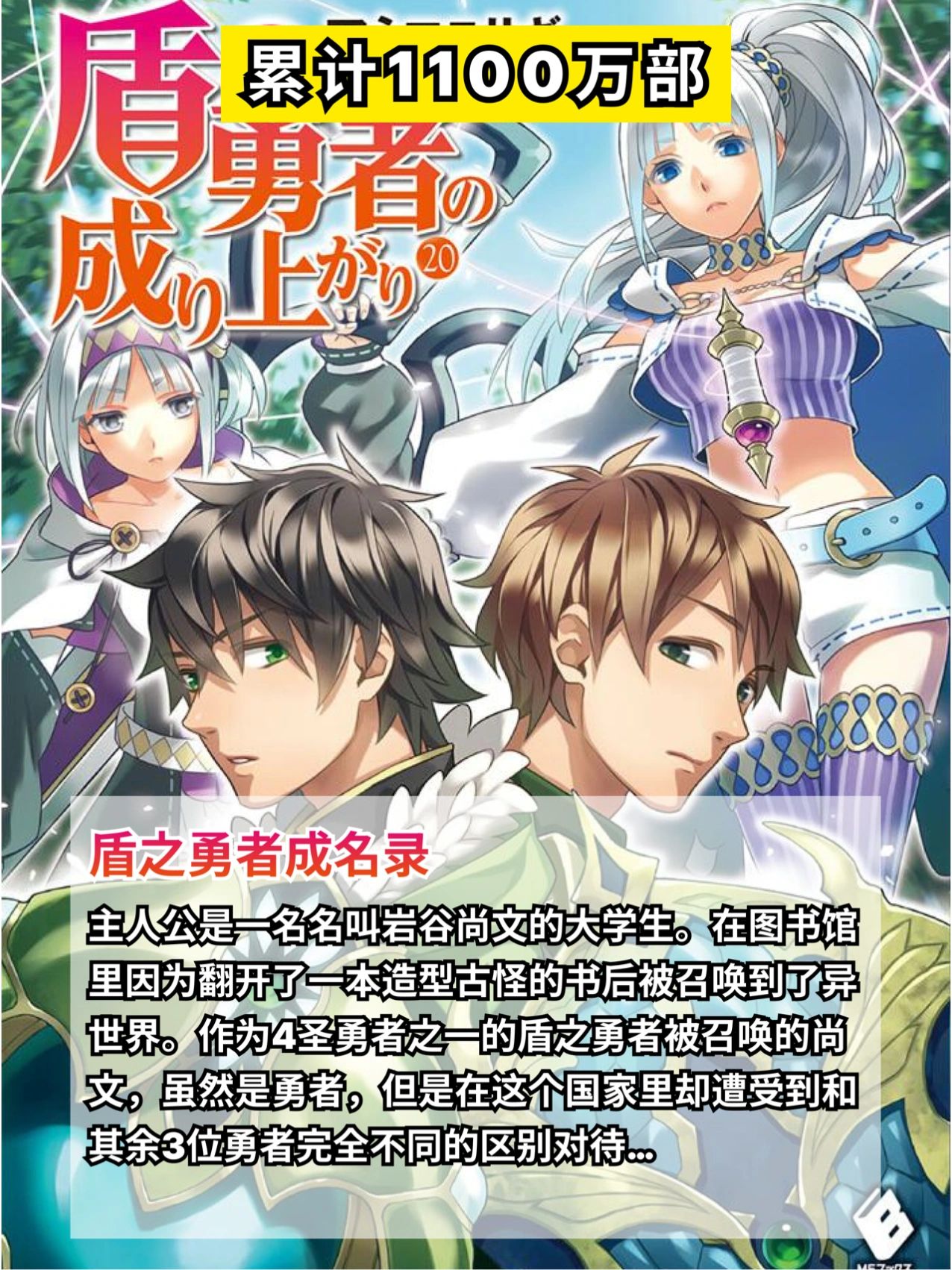 主人公是一名名叫岩谷尚文的大学生。在图书馆里因为翻开了一本造型古怪的书后被召唤到了异世界。作为4圣勇者之一的盾之勇者被召唤的尚文,虽然是勇者,但是在这个国家里却遭受到和其余3位勇者完全不同的区别对待…