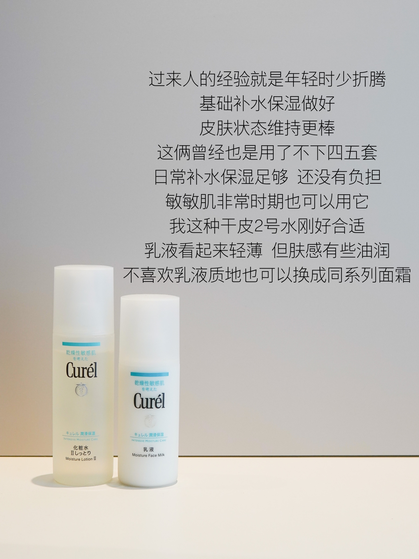 20岁以下:珂润水乳(基础补水保湿)、悦木之源水乳(修护去红)