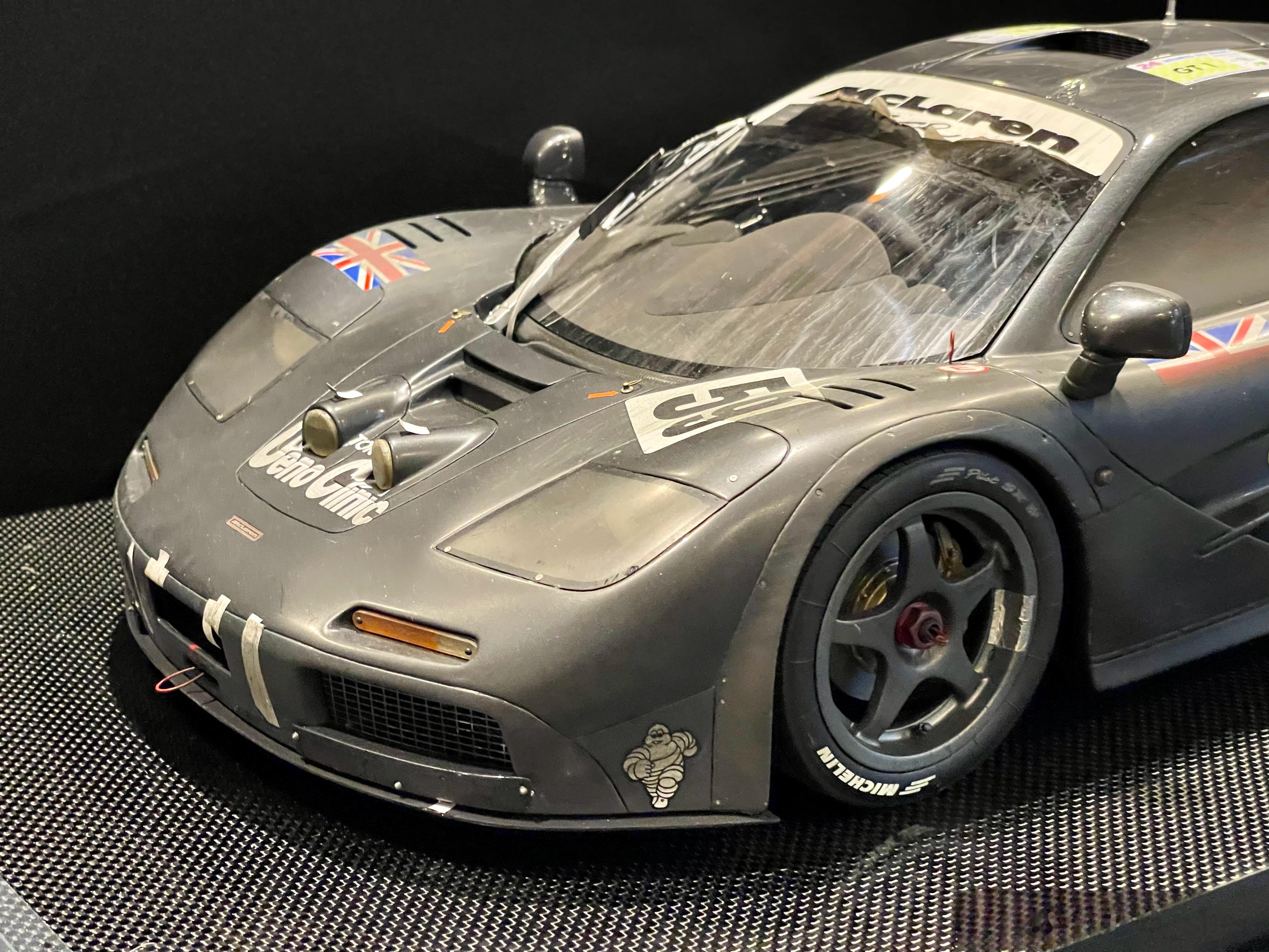 一位朋友专门带了Amalgam出品的1:8 F1 GTR来见我,1995年勒芒24小时耐力赛全场冠军,01R,模型还原了比赛后赛车的状态,俗称“战损版”。