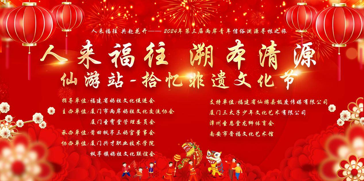 本届人来福往,共赴花开,2024年第三届两岸青年信俗渊源寻根之旅,仙游站人来福往,溯本清源,拾忆非遗民俗文化节,即将在仙游仙游枫亭万星广场厦门圣霄堂行台拉开帷幕,本次活动将深入挖掘整合两岸文化旅游资源,积极展现原汁原味、同源同享的民俗文化风情,活动涵盖民俗非遗展演、民俗手工艺品展览、非遗主题集市、街头文化艺术快闪配套活动等一系列精彩纷呈的版块内容,为市民群众献上了一场囊括玩、乐、赏的民俗盛会,以迎接两岸福神拉开帷幕共同期待寻根团的到来,了解先辈们的艰辛,携手传承中华传统文化!