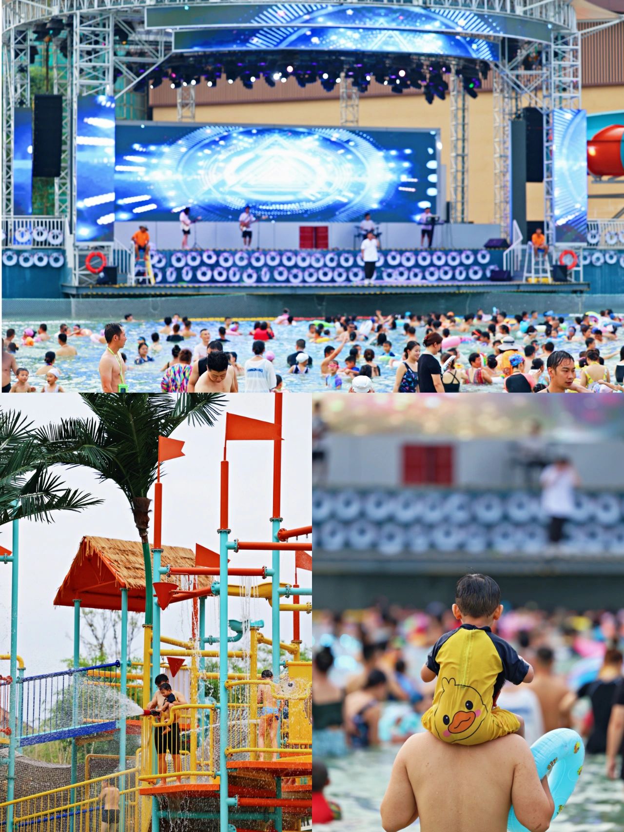 面积超大,毕竟单独开了一片单独做水上乐园,对小朋友比较友好,还有儿童坐的小旋风,小水寨。